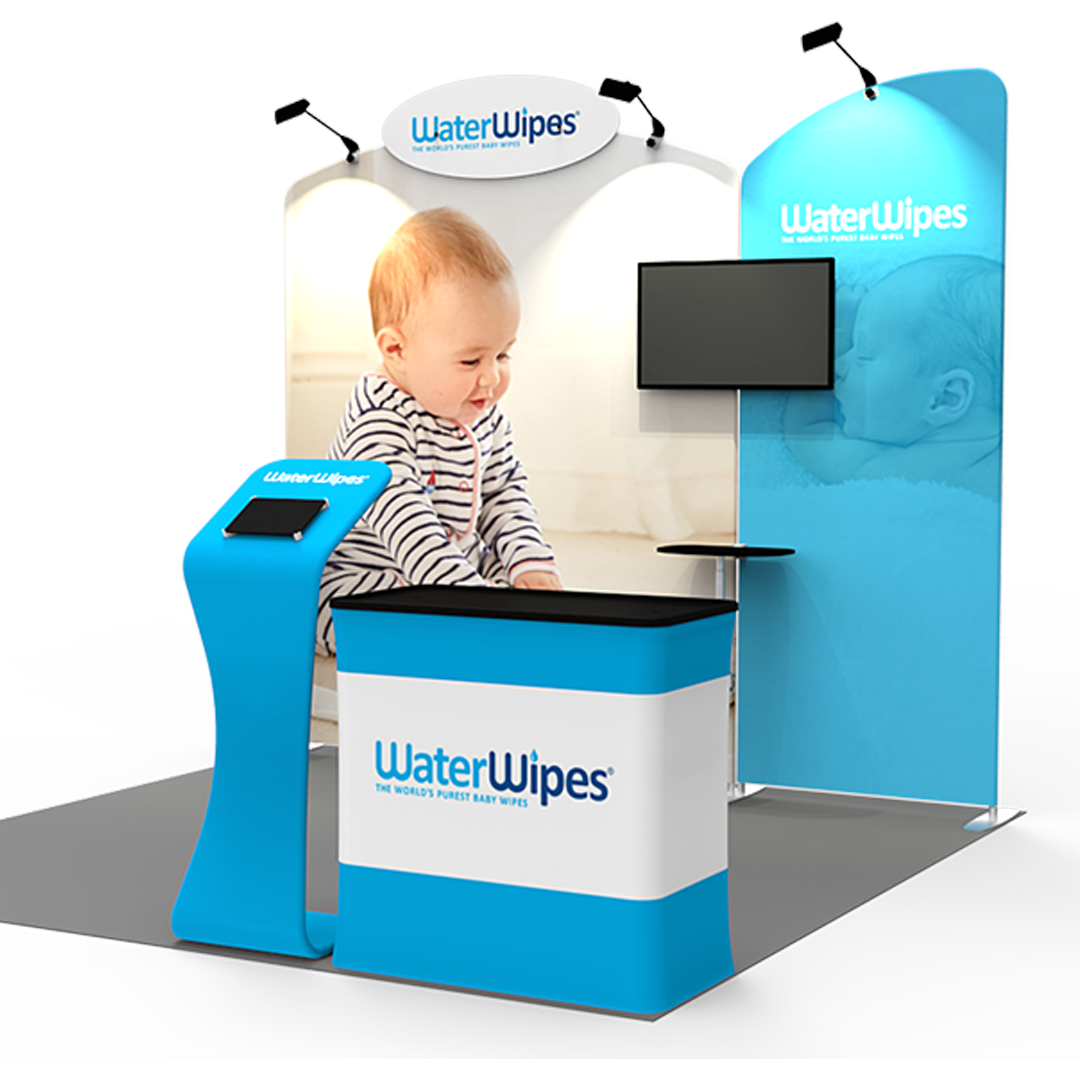Whether you’re a small startup or an established brand, the 10 x 10 ft Trade Show Booth Display for Water Wipes gives you the tools you need to make a lasting impact. Make your mark at your next event and watch your connections grow!