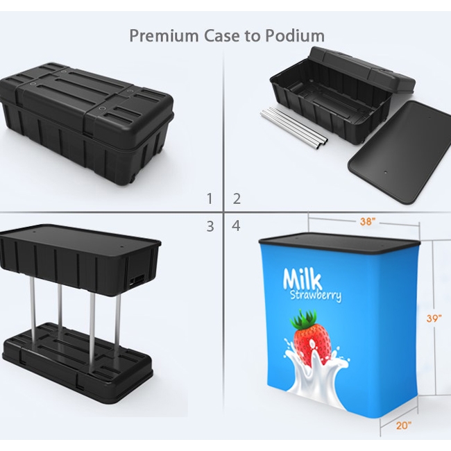 Showcase your retail store’s merchandise with this 10ft x 20ft trade show booth featuring a wrinkle-free, lightweight back wall with clear, plexiglass product shelves. This portable trade show display kit includes four shelves, one garment bar, two overhead lights, and a hard shipping case that converts to a graphic-printed counter.