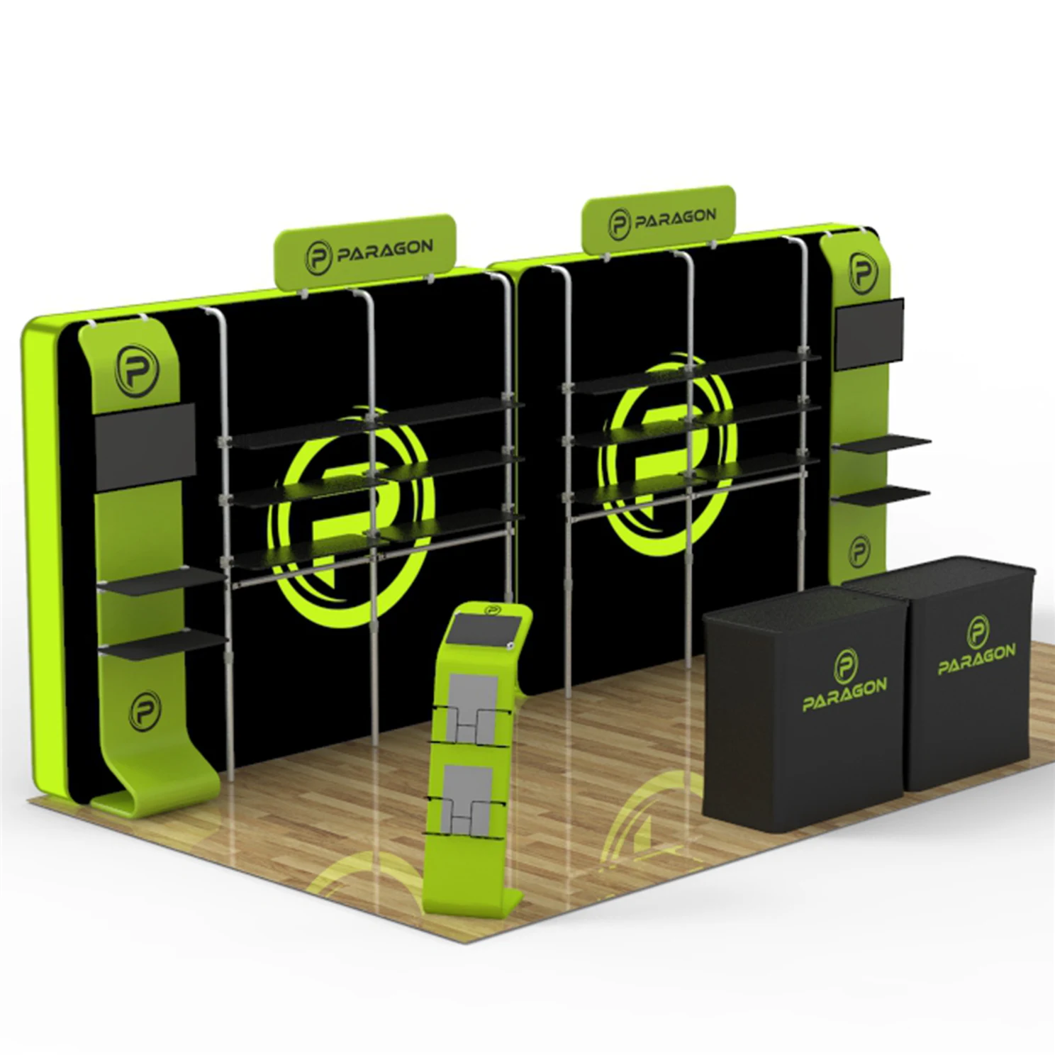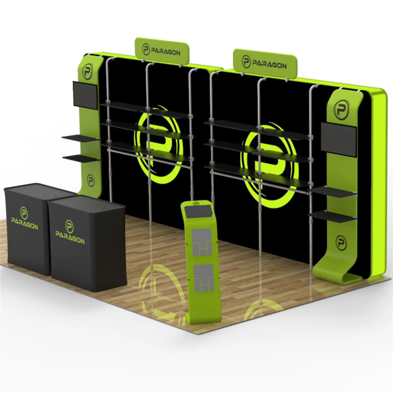 As one of the leading trade show booth manufacturers, Trade Show Display Depot understands the unique needs of exhibitors. The Paragon model seamlessly integrates sleek exhibit booth designs with functional shelving, allowing you to showcase your products while maintaining an organized appearance. The backlit feature creates an eye-catching visual impact, ensuring you stand out in crowded settings.