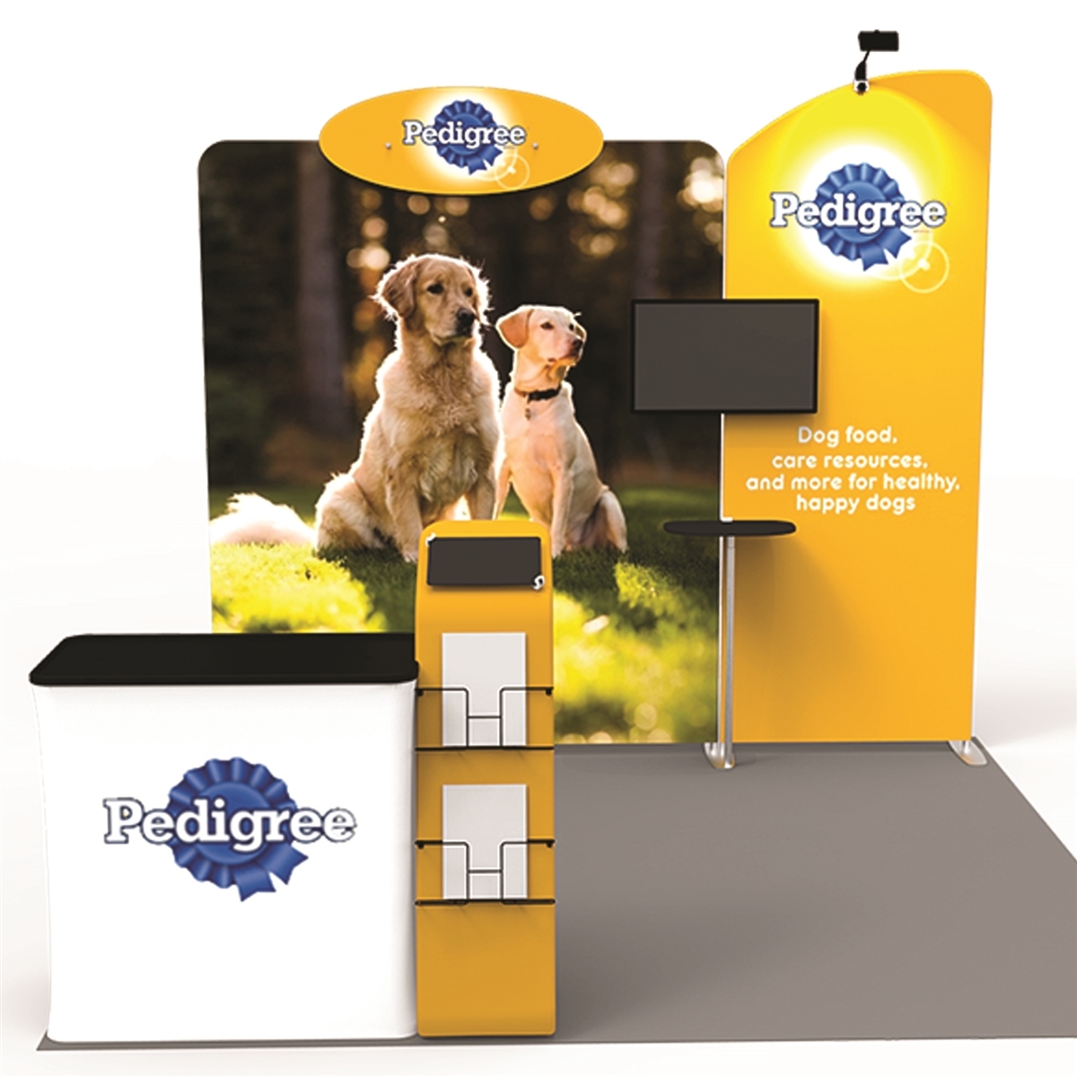 - Print two sides of the display for a full walk-around experience or flip your panel around to display an alternative message.