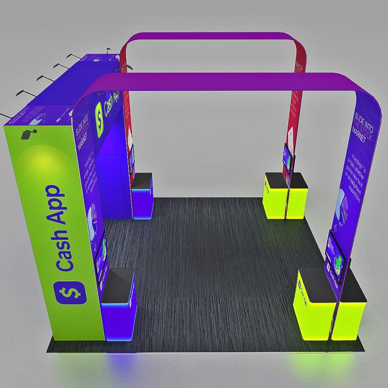 Elevate your brand presence with the 20 x 20 Double Arch Exhibit Booth featuring Cash App from Trade Show Display Depot. Recognized as one of the best trade show displays on the market, this innovative booth design ensures that your brand captures attention and facilitates engagement at any event.