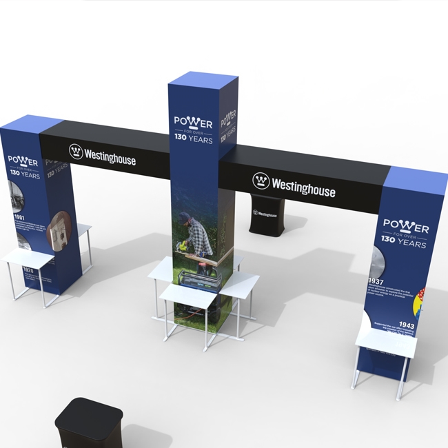 Central Booth Anchor: A common use is as the central hub of your booth, with demo pods, counters, and meeting areas logically arranged around the tower’s base.