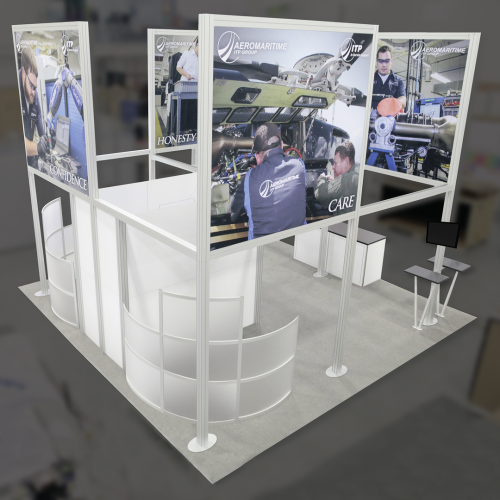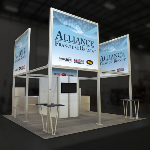 Hybrid Pro™ Modular Kit 19 is an eye-catching 20ft x 20ft island exhibit, perfect for the serious exhibitor.