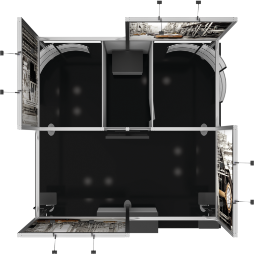 • LED display lights atop the structure illuminate messaging so that it is easy-to-see across the show floor.