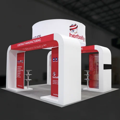 We designed this system to be one of the most creative trade show displays available. Its open-concept 20′×20′ floor plan is perfect for creating multiple zones. You can use the central space for live product demonstrations, while a stylish, semi-enclosed corner can be used as a consultation area. This exceptional convention booth display features large graphic walls you can use as branded backdrops for social media photos, increasing your online reach.