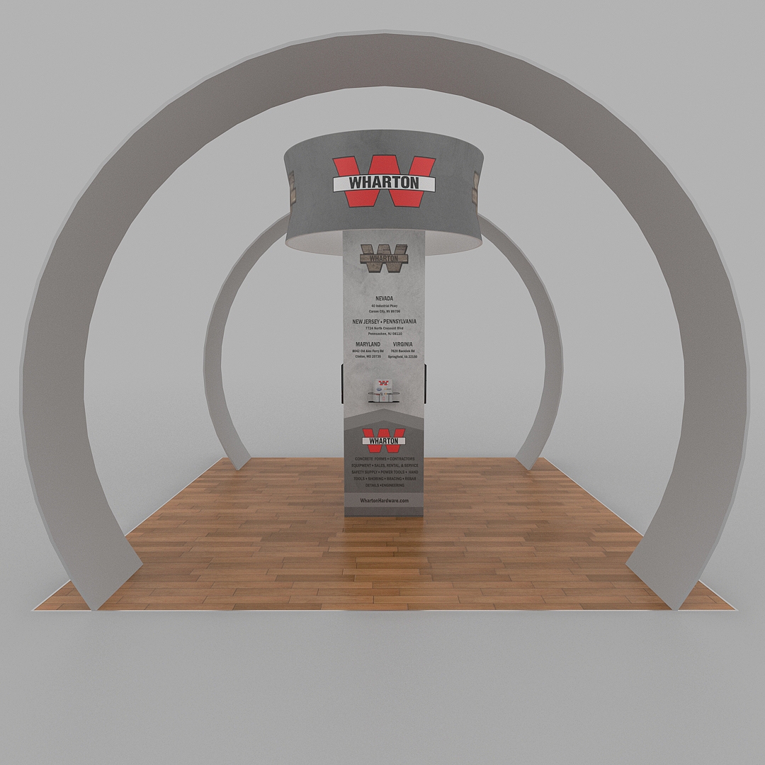 Features a tall central tower that provides 360-degree brand visibility across the entire convention hall.