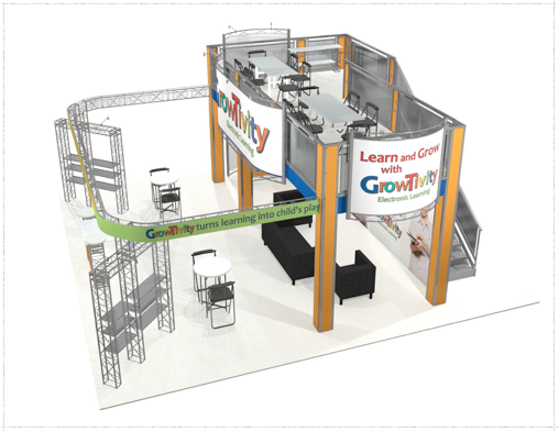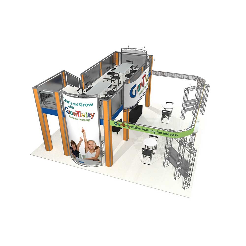How do you create a trade show environment that doesn’t just display products, but actually fosters growth, activity, and collaboration? You need a structure that encourages flow and interaction on a grand scale. The 30×30 Growtivity Double Deck Truss Display System is designed to be that central hub, transforming your large footprint into a dynamic, two-story ecosystem. A truly effective large-scale exhibit design requires an expert partner, which is what sets us apart from other trade show booth design companies.