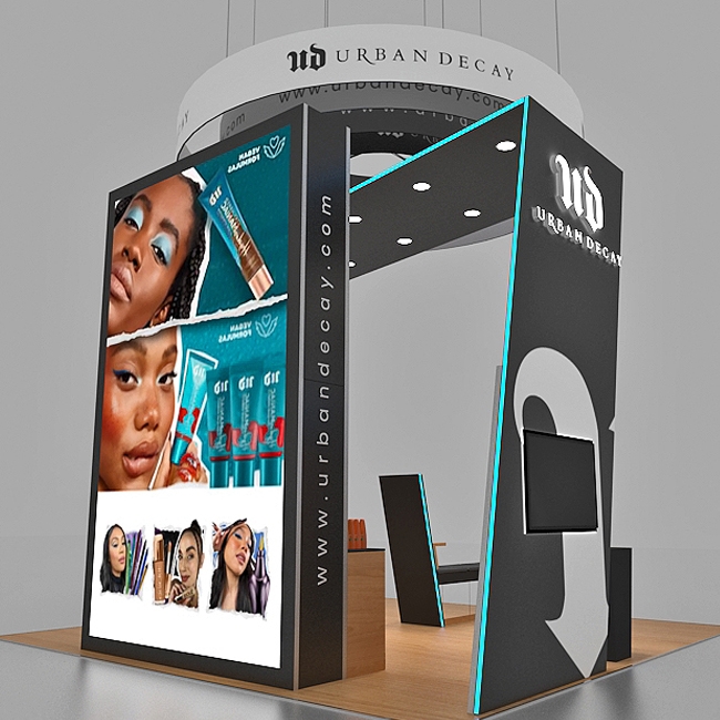 This stunning booth features a unique butterfly-inspired design characterized by its elegant curves and vibrant graphics. The visually appealing structure not only draws attention but also encourages engagement, making it ideal for conference exhibit displays. With ample space for product demonstrations and interactions, this custom trade show booth enables you to create memorable experiences for your audience.