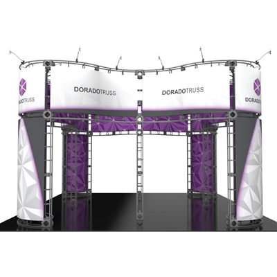 Tradeshow competition at your next exhibition can be fierce! Start your next season with a new 20×20 truss island display. This new Dorado 20ft x 20ft Island Orbital Express Truss Exhibit Kit is the latest of the planetary line of Orbital Truss Trade Show Kit. The Dorado trussTM features over 40 professionally designed “off-the-shelf” kit. The Dorado kit comes complete with all the parts, fixtures and fittings you needto create a successful exhibit, including (depending on the kit) low voltage spotlights and adjustable tabletops. The Dorado features two 11ft tall towers, increasing visibility to attendees. The Lumina spotlights do a great job illuminating the space with 24 spotlights!