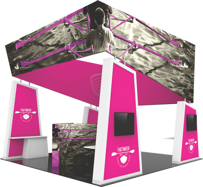 • Use for Integrated Storytelling: This is one of our unique booth designs that masterfully combines stunning fabric graphics with digital media for a powerful brand experience.