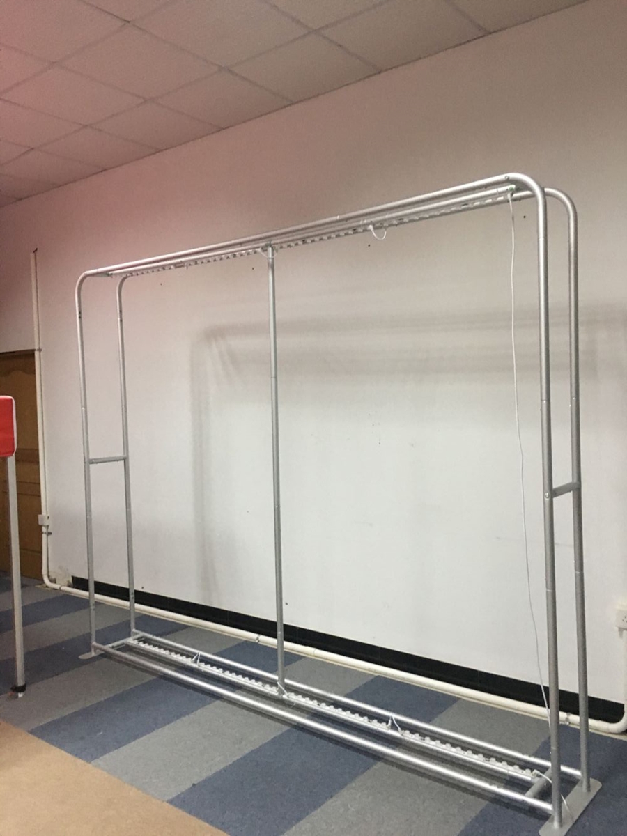 This LED backlit tension fabric display is ideal for all exhibitors whom want to the backlit design to stand out front the crowd! The frame is composed of lightweight aluminum poles attached with dungy cords making your 10ft straight pop up frame a breeze. After your lights weight frame is assembled simply attach the lights to the perimeter of the booth, connect all the power supplies and lights together and then slide on the pillowcase – like graphic over the frame and zip it closed at the bottom. The zipper is hidden from view and tightens up the stretched fabric graphic for a smooth image. Single or Double sided available, if you want to place graphics on both sides.