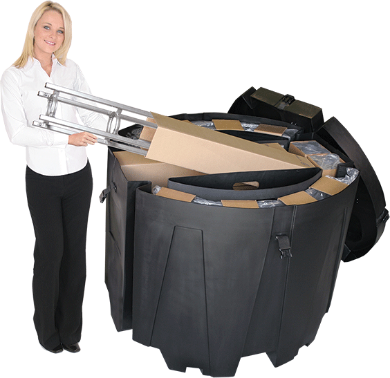 • Features a sleek, contemporary design that adds a professional, high-tech feel to your booth.