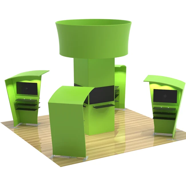 Shop this Tower 20 X 20 Trade Show Booth with 2 Custom Kiosk from Trade Show Display Depot today.