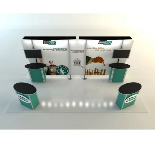 The VK-1032 is more than just a backdrop; it’s a dynamic, customizable environment. Its modular frame can be reconfigured to fit different booth sizes and layouts, making it a versatile long-term investment. This flexibility makes it a favorite among exhibitors looking for creative trade show displays that can adapt to various events and spaces. Our expert booth builder team can help you design a layout that perfectly showcases your products and services, ensuring every element works together to attract and engage attendees.