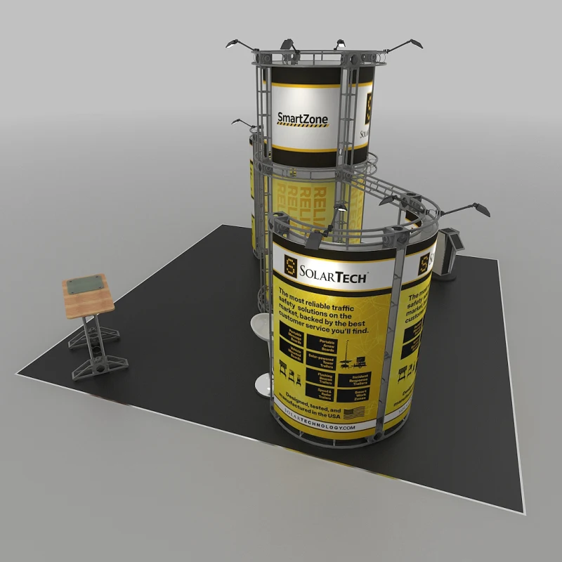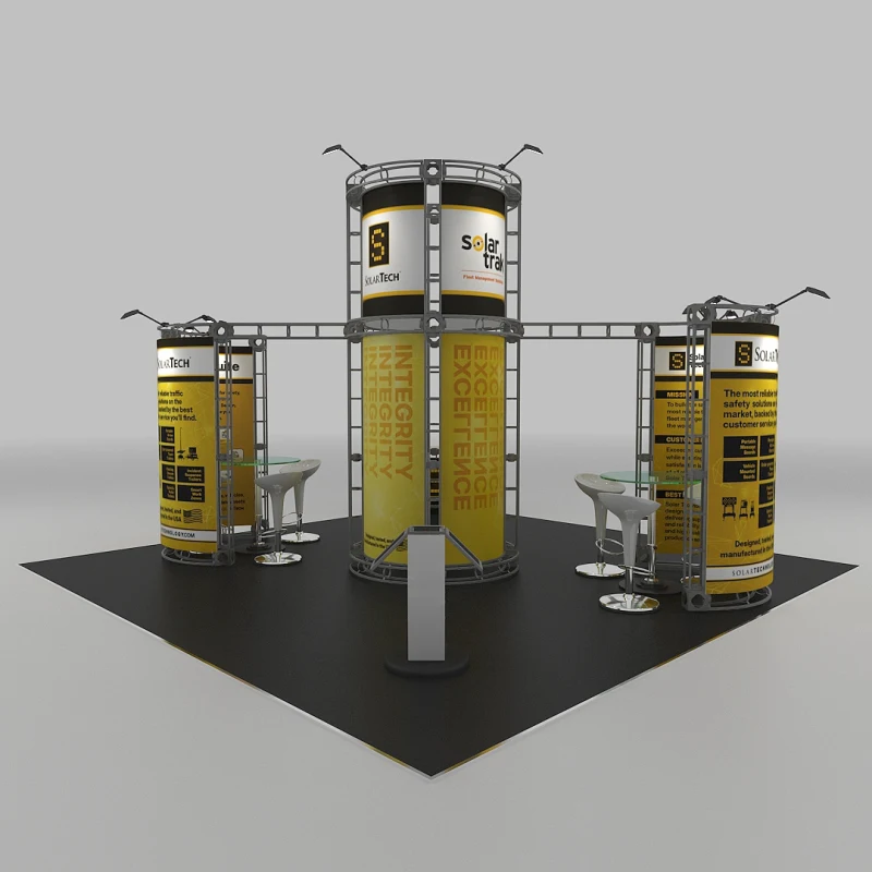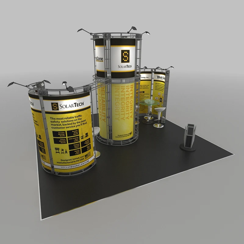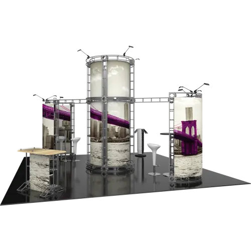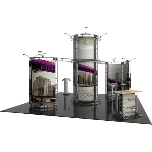 When your goal on the trade show floor is to rise above the noise, you need a display that commands the vertical space. The Zenit 20×20 Orbital Express Truss Exhibit from Trade Show Display Depot is engineered to do just that, using a towering central structure and a distinctive circular header to create a landmark for your brand. This powerful design ensures your expo booth display is visible from every aisle, drawing attendees to you with its impressive height and professional aesthetic.